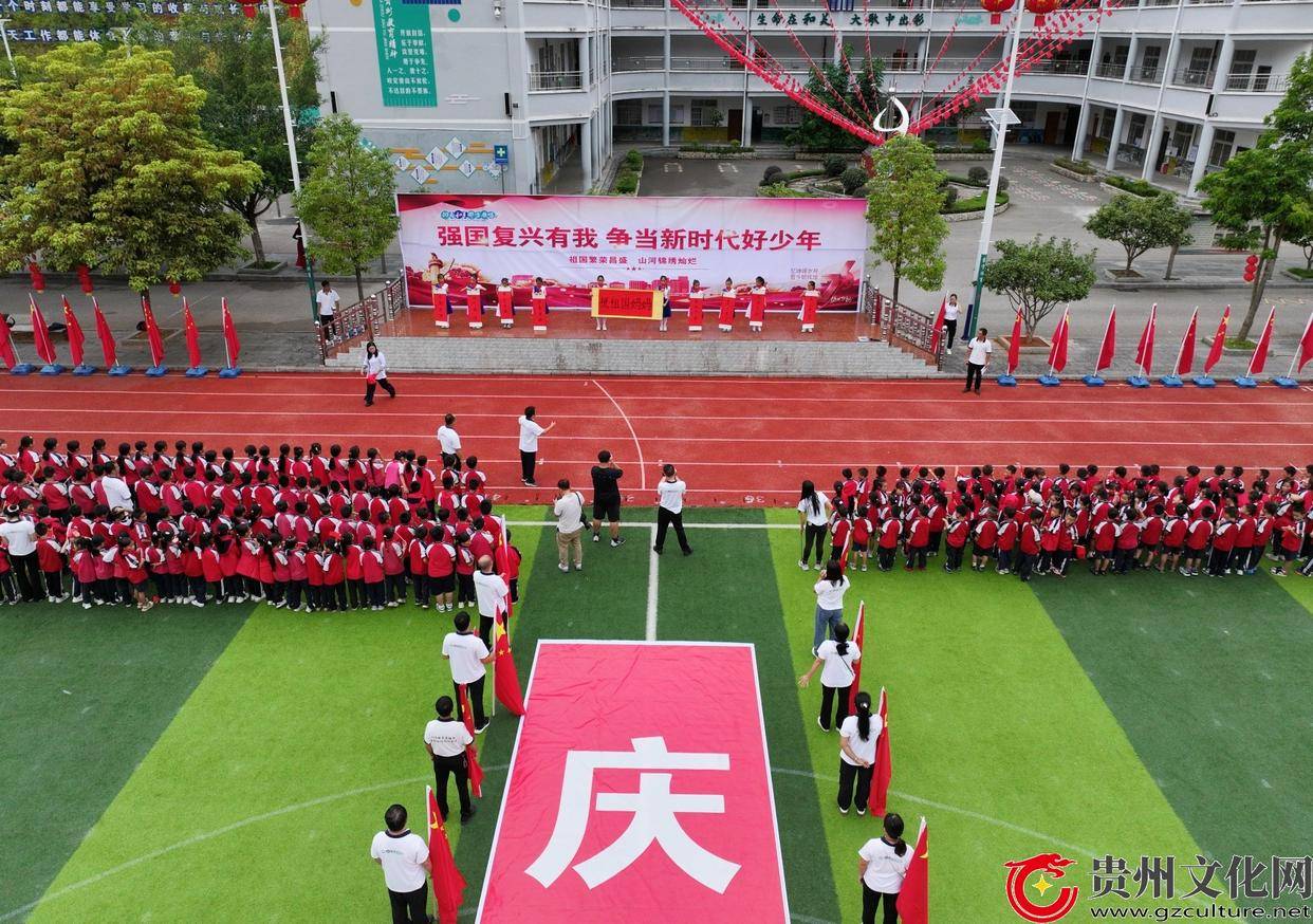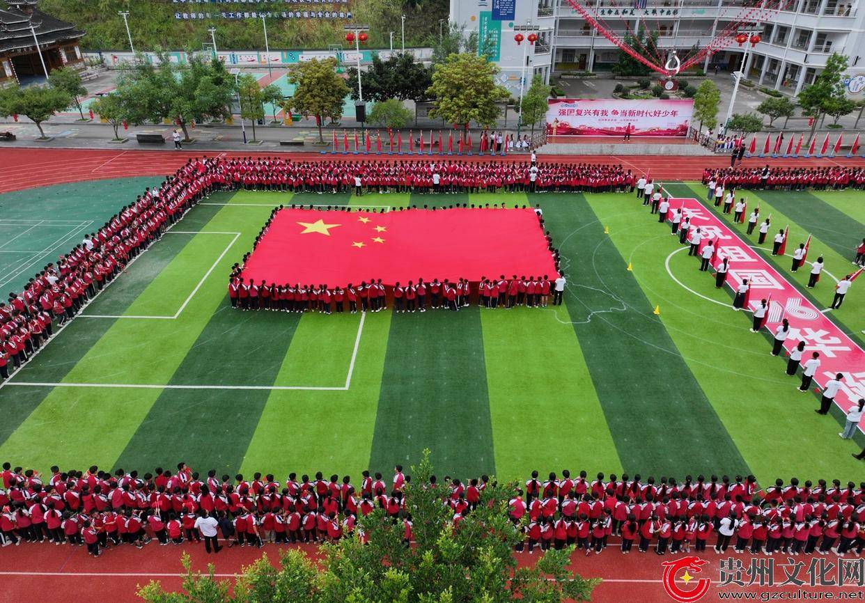 2025年9月29日,贵州省从江县城关第四小学师生在操场参加“七十六载风华映山河·双节同庆家国梦”主题活动。(龙梦前 摄)