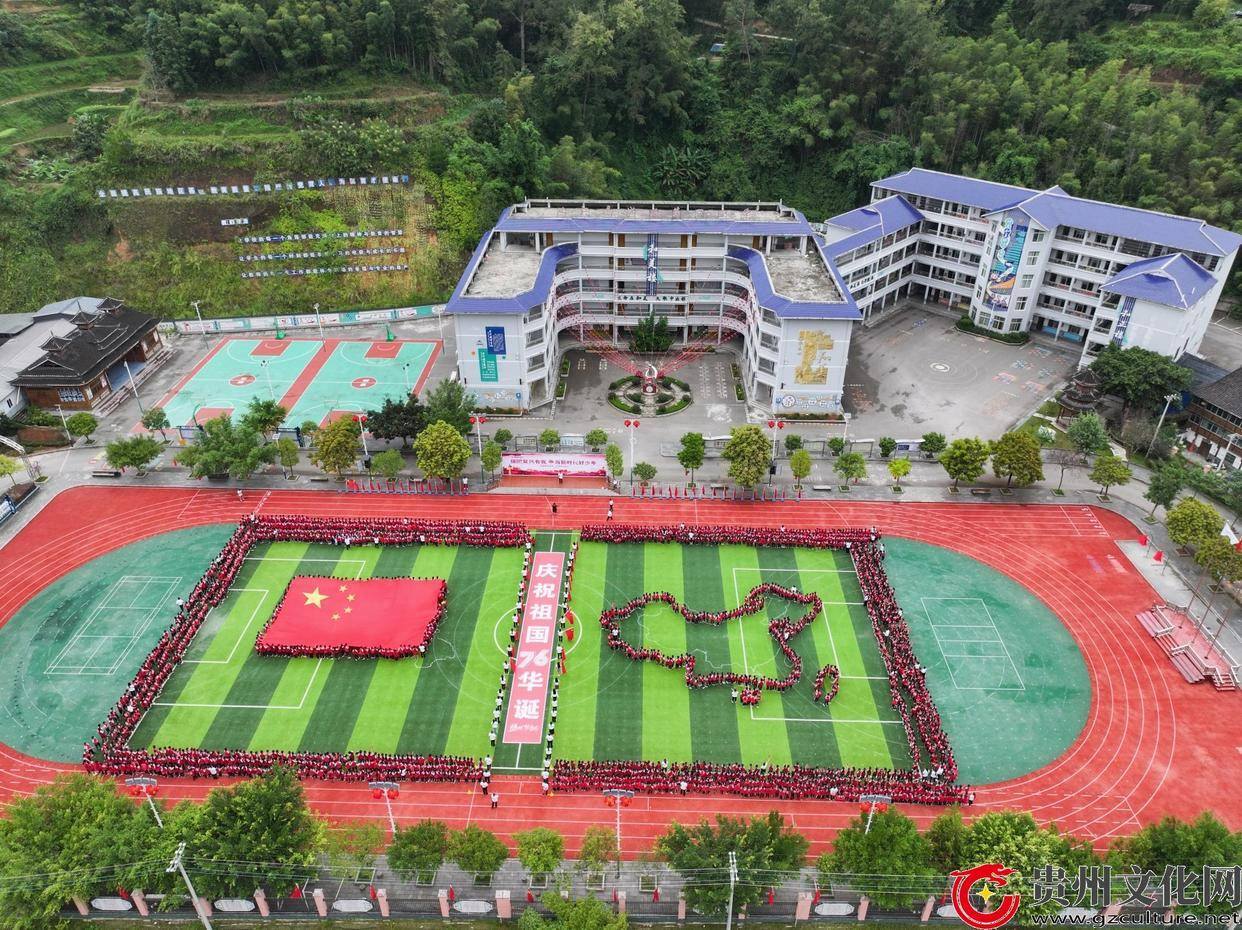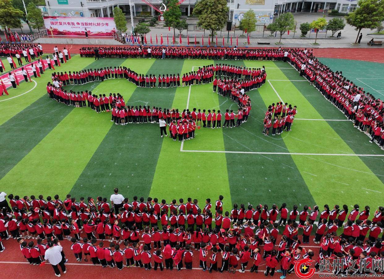 2025年9月29日,贵州省从江县城关第四小学师生在操场参加“七十六载风华映山河·双节同庆家国梦”主题活动。