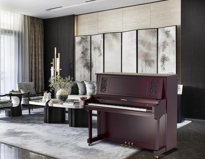 就像中式家居里的红木家具,讲究 “木性与人性相通”,音乐元素也该如此 —— 它不该是突兀的 “外来者”,而应是融入空间肌理的 “一份子”。比如一架钢琴,若选得好,它能像圈椅的弧度、山水画的留白一样,成为中式家居的 “有机组成”:琴身的木质纹理与实木地板呼应,琴盖的线条与博古架的轮廓契合,弹奏时的琴声与窗外的雨声、风声交织,让整个空间既有中式的静谧,又有音乐的灵动。这种 “融于无形,却处处可感” 的状态,才是中式家居音乐元素的最高境界。