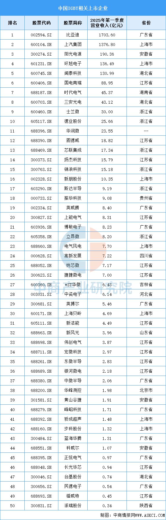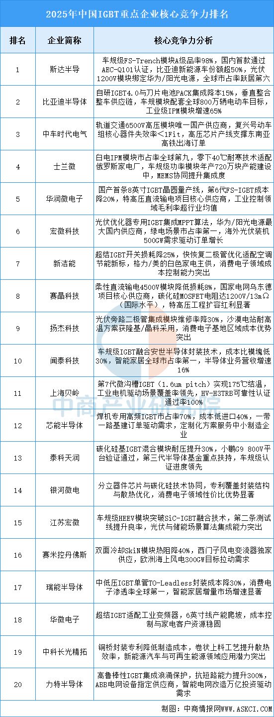 更多资料请参考中商产业研究院发布的《2025-2030年中国IGBT市场调查与行业前景预测专题研究报告》,同时中商产业研究院还提供产业大数据、产业情报、行业研究报告、行业白皮书、行业地位证明、可行性研究报告、产业规划、产业链招商图谱、产业招商指引、产业链招商考察&推介会、“十五五”规划等咨询服务。