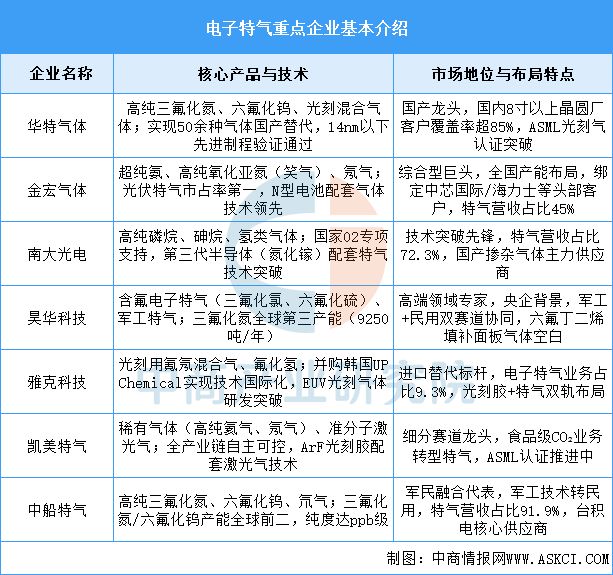 中国电子特气行业形成差异化格局,核心特点有三:技术聚焦光刻气、高纯掺杂气体等高端制程突破,国产化进程在半导体制造、光伏及面板领域加速替代进口并打入全球供应链,产能布局向含氟特气全球领先和军民融合等多领域协同拓展,呈现“高端突破-国产替代-多场景支撑”的一体化发展体系。