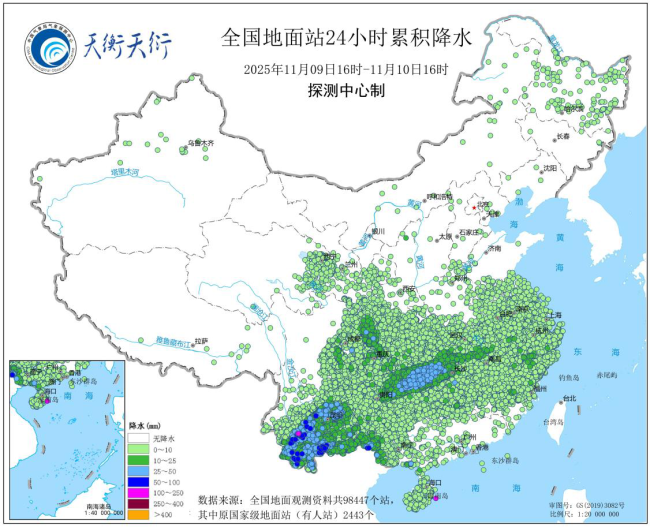 综合气象观测产品系统(天衡天衍)全国地面站24小时累积降水产品(图4)显示,9日16时-10日16时,云南等地出现大到暴雨。24小时最大累积降水量144.7mm,发生在云南临翔邦东昔归码头。